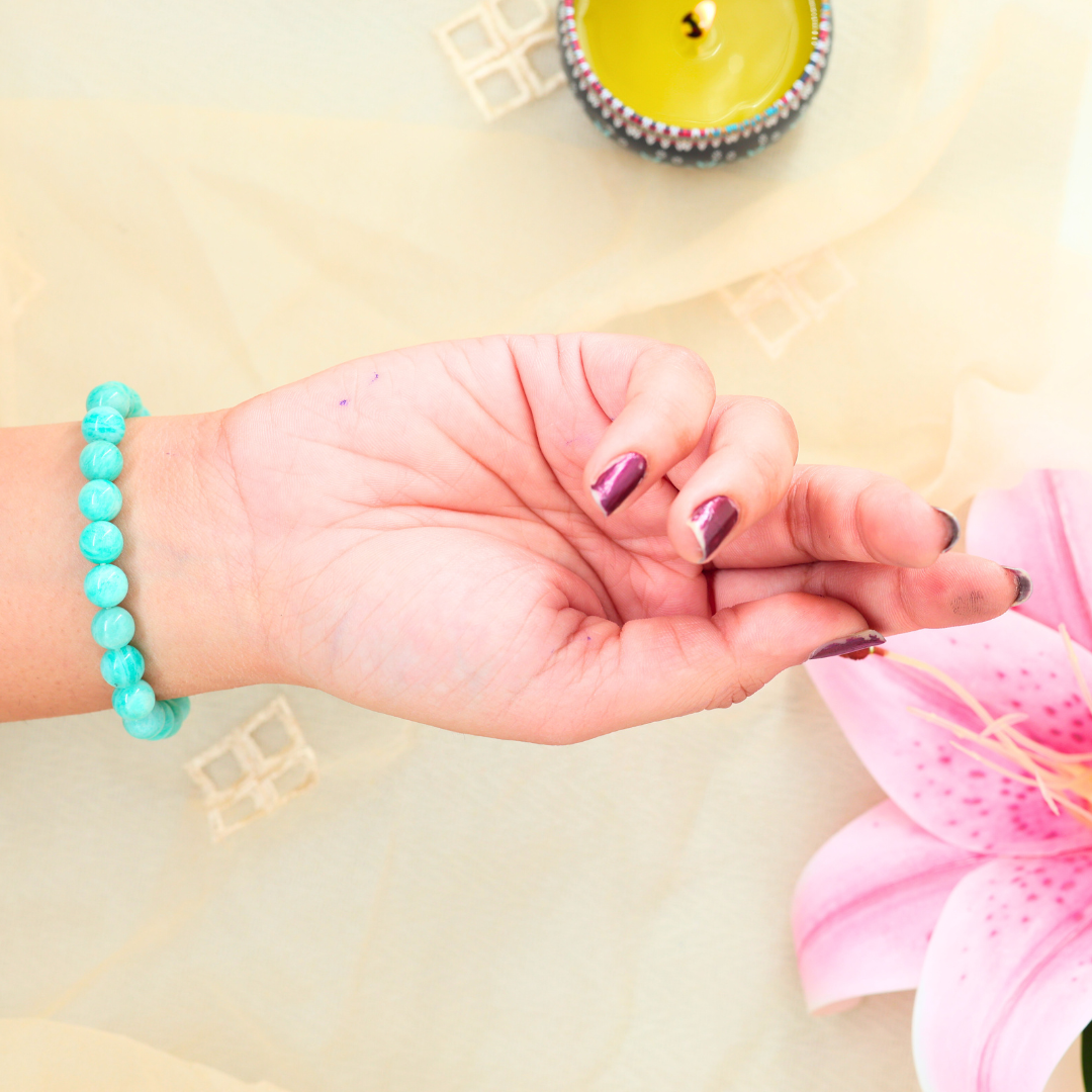 This bracelet is ideal for those facing anxiety, overthinking, or difficulty expressing themselves. Amazonite helps release fear of judgment and empowers you to communicate with confidence and compassion. It’s also known to support emotional healing, especially from past trauma or heartbreak.